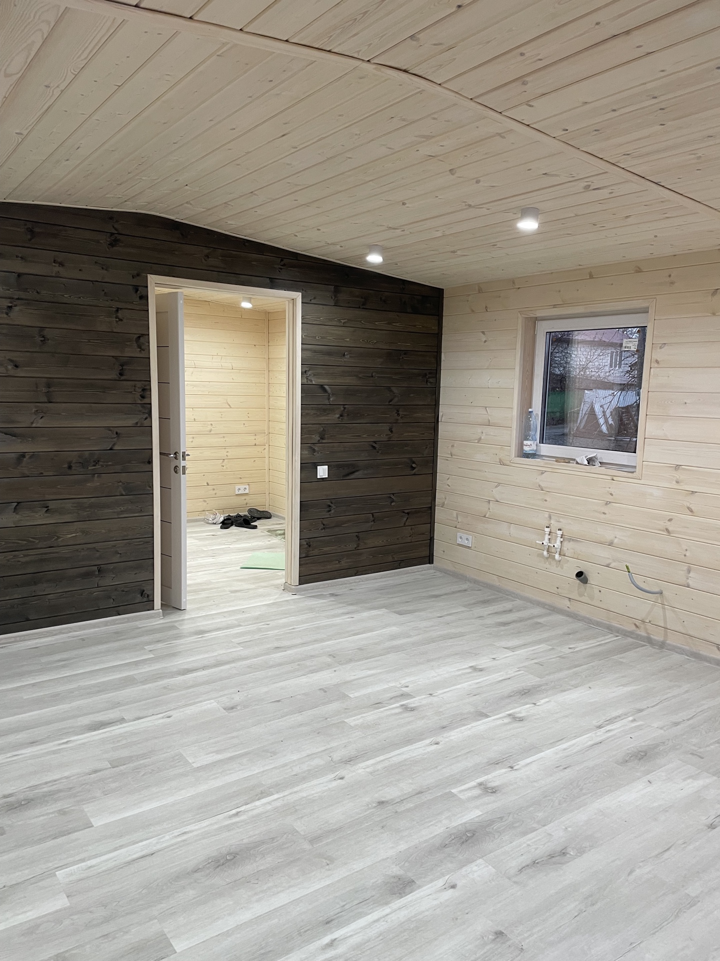 Данный дом отличается наличием дополнительного отдельного входа, комплектуется деревянным фасадом из имитации бруса, во всех комнатах электрический пол покрытый кварцвинилом.