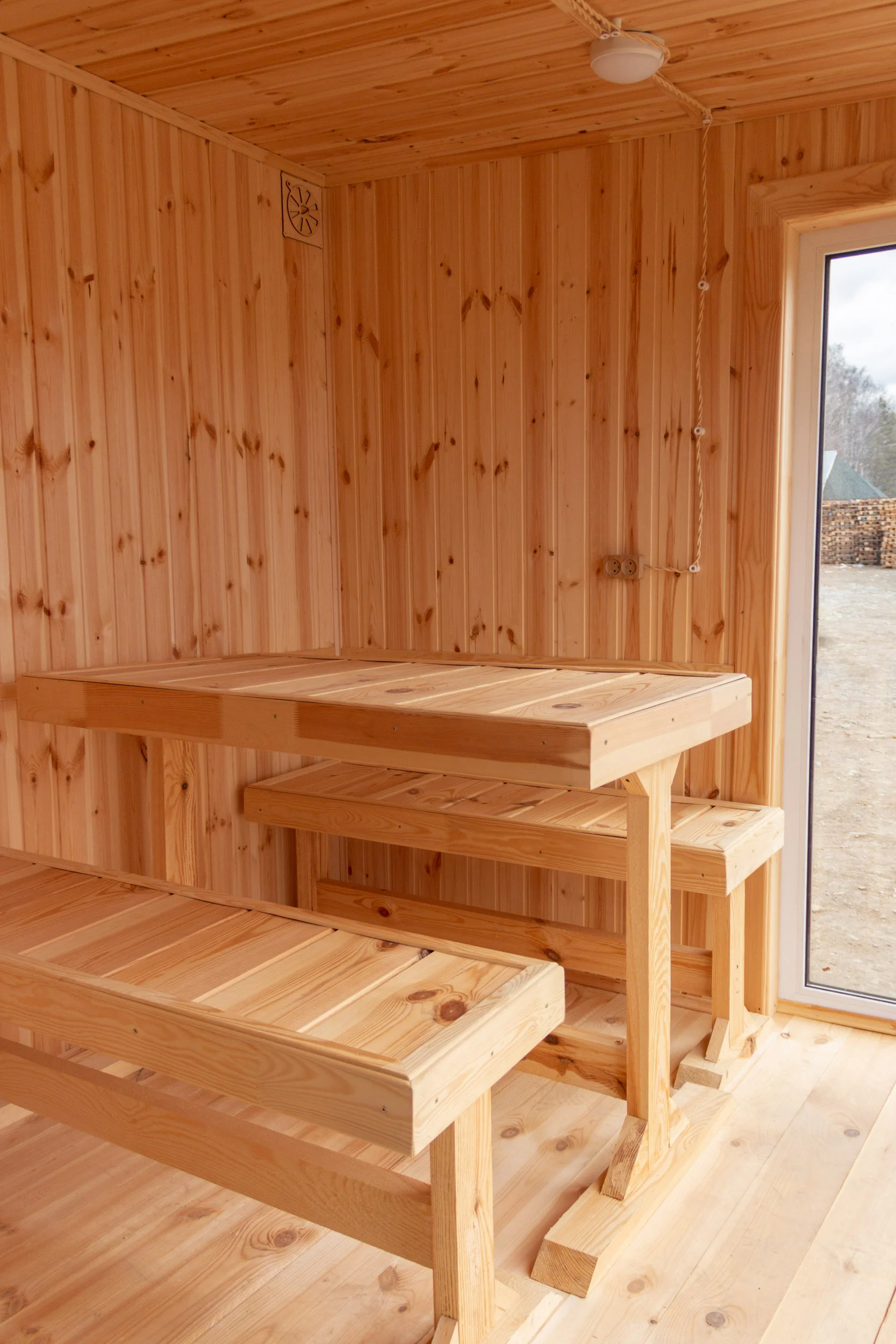 Баня площадью 20м2, толщина стен полов и потолков 150мм, материал каркаса сосна, внутренняя отделка парной липа, остальных помещений хвоя, комплектуется электрикой со всей разводкой и электроприборами, трубной разводкой воды и канализации. Обработана огнебиозащитой, окраска пропиткой с колером.